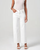 AGOLDE's Ren jeans are crafted from regenerative cotton with just the right amount of stretch, offering a perfect balance of comfort and structure. With a high-rise waist and cropped wide legs, these jeans provide a relaxed yet flattering silhouette. Ideal for casual days, they pair effortlessly with a half-tucked tee or a sleek bodysuit for a laid-back yet polished look