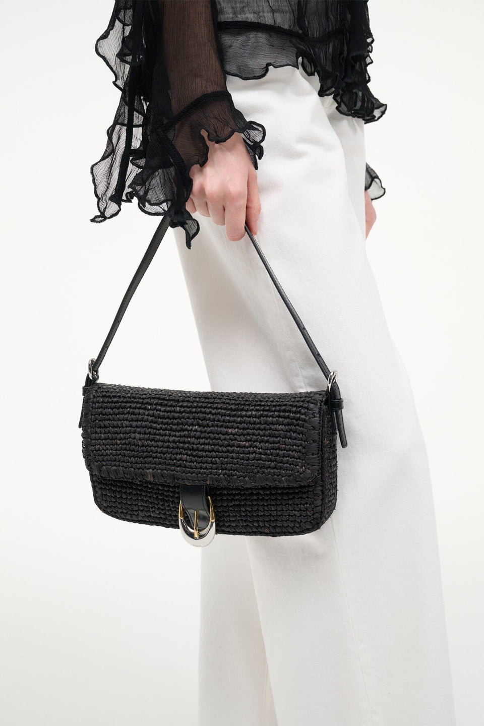 Staud Harlow Raffia Bag - Black Raffia