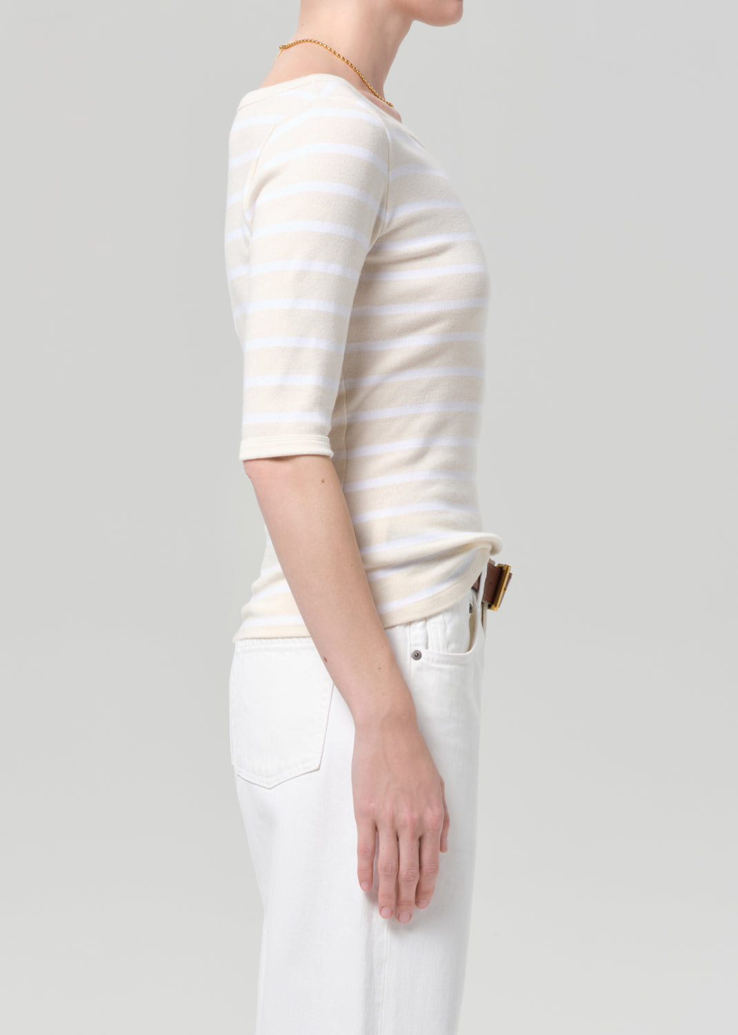 Citizens of Humanity 3/4 Sleeve Boat Neck Slim Tee - Brulee Stripe