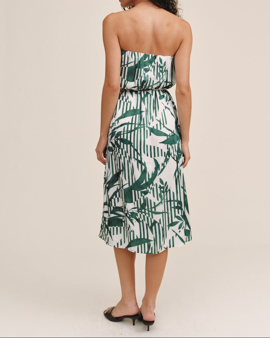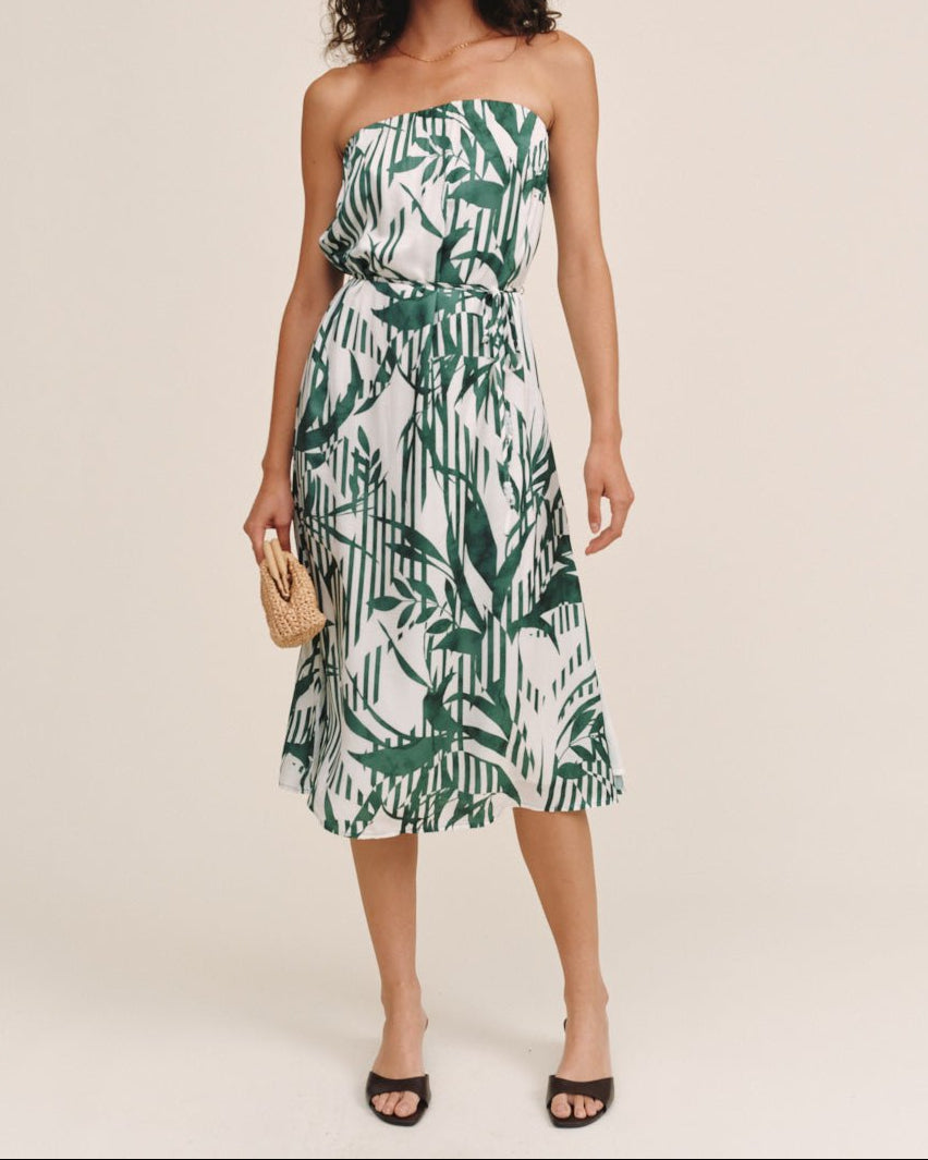 Bella Dahl Flowy Strapless Midi Dress - Palm Paradise Print