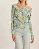Bardot Marisol Asymmetric Mesh Top - Green Flo