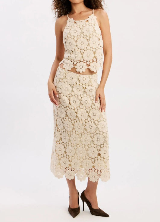 Bardot Veneta Crochet Midi Skirt - Light Beige