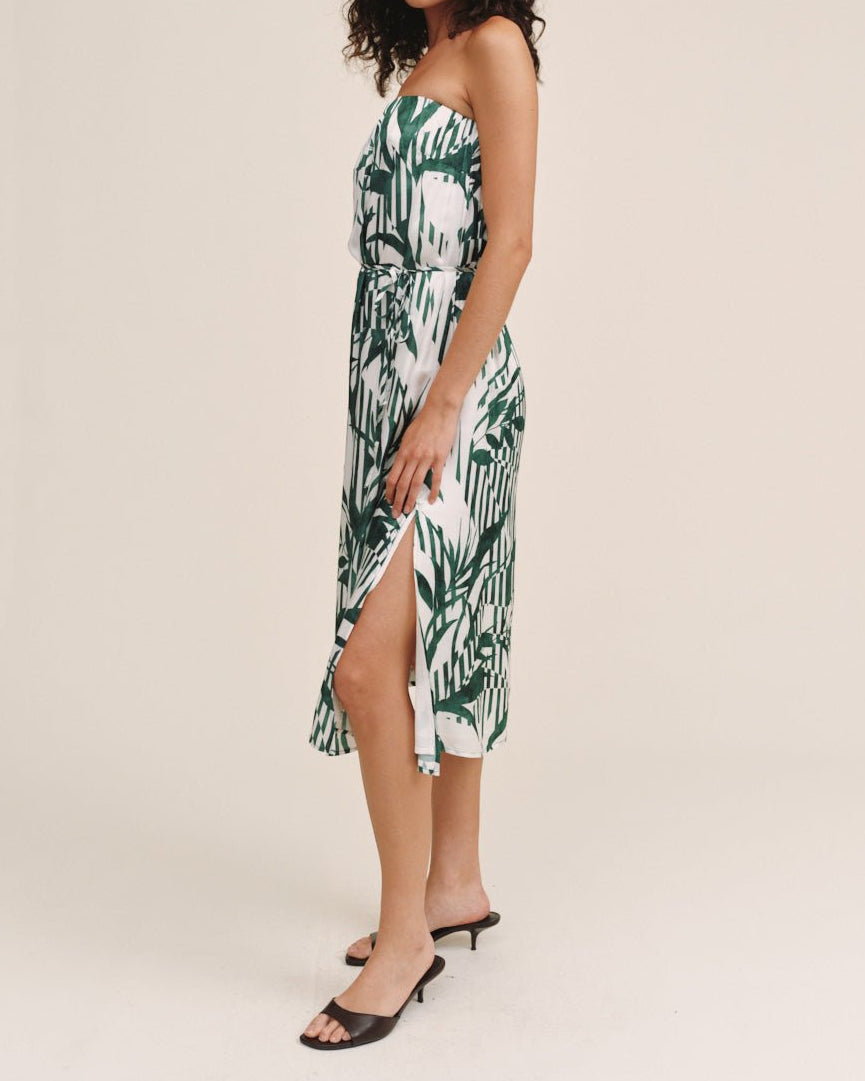 Bella Dahl Flowy Strapless Midi Dress - Palm Paradise Print