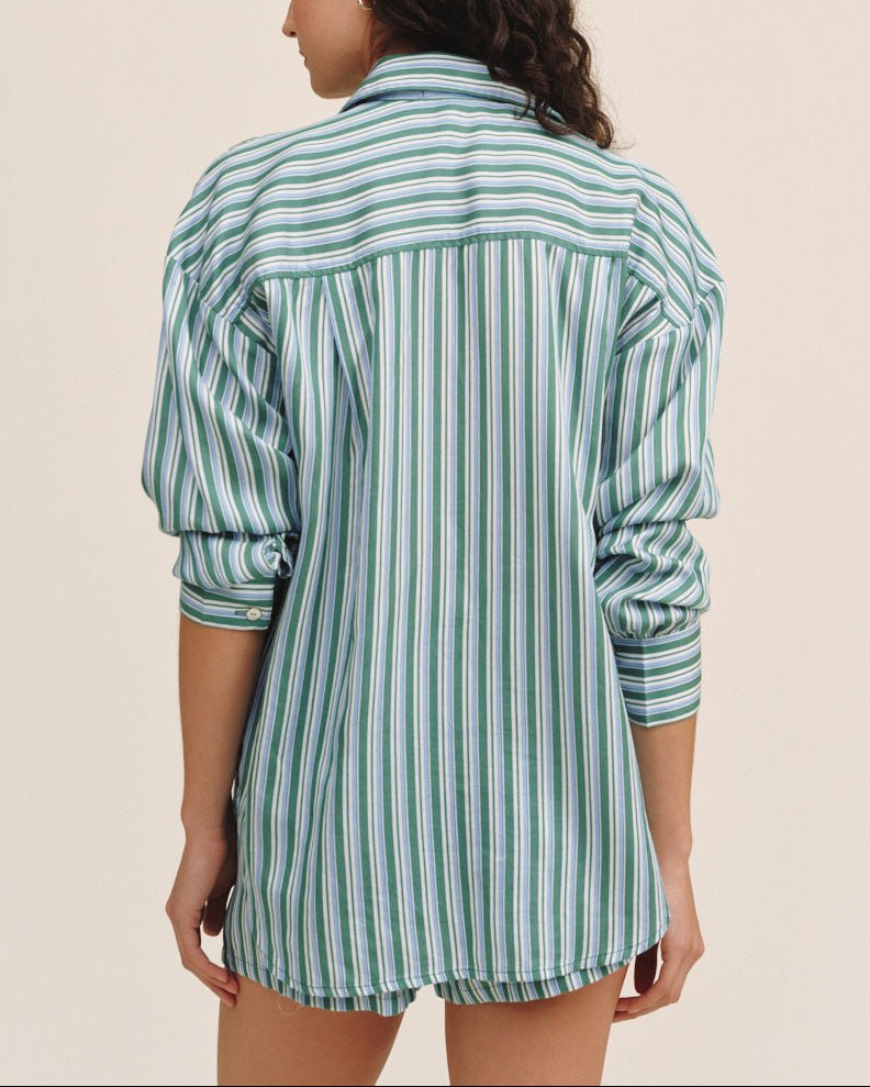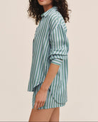 Bella Dahl Oversized Button Down - Emerald Surf Stripe