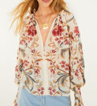 Embrace vibrant charm with the Sand Royal Garden Tassels Blouse by FARM Rio. This playful top features a soft round neckline and bursts with lively floral patterns in warm, sun-kissed hues. Flowing fabric and delicate tassels along the sleeves create a spirited silhouette that dances with every movement. Perfectly blending comfort and whimsical detail, it invites a joyful, carefree vibe into your everyday style.