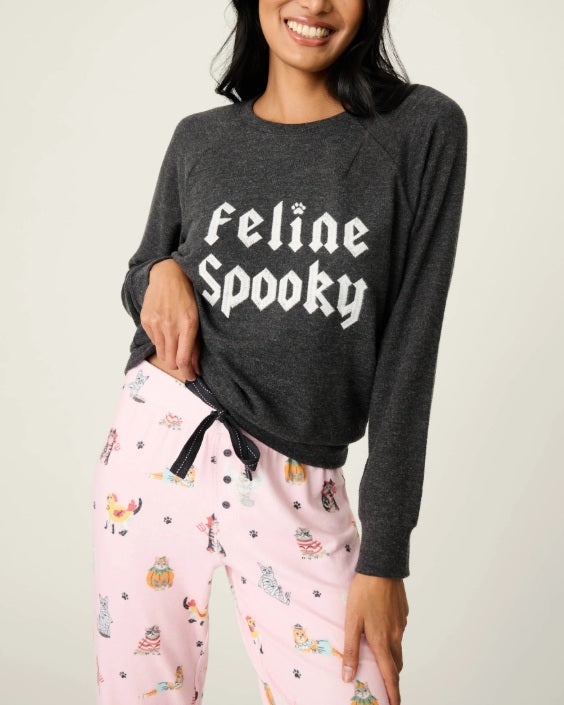 PJ Salvage Feline Spooky Graphic Fleece Sweatshirt