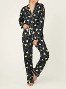 Shaken, stirred, or straight to bed—this martini-print flannel set brings cocktail lounge vibes to cozy time. Made from soft cotton in a classic twill weave, it includes a button-front top with contrast piping, relaxed drawstring pants, and a matching headband. A cheeky way to toast to comfort, whether you’re enjoying at-home happy hour or drifting into dreams.