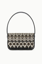 Our latest limited-edition Tommy features a playful seasonal print. The Tommy Bag is a hand-beaded shoulder bag with vegan leather piping. This style features a single flap closure, inner zip, and a back slip pocket.