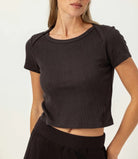 An update to our best-selling Brother Tee, the Pointelle Baby Brother Tee is crafted from a new 100% cotton pointelle fabric, offering a new take on a classic silhouette. It features an overlapping shoulder yoke detail and soft cap sleeves. Finishes right at the belly button with a size small length measuring 16.5in. Complete with a crew neckline, it’s the perfect everyday essential with a delicate touch.