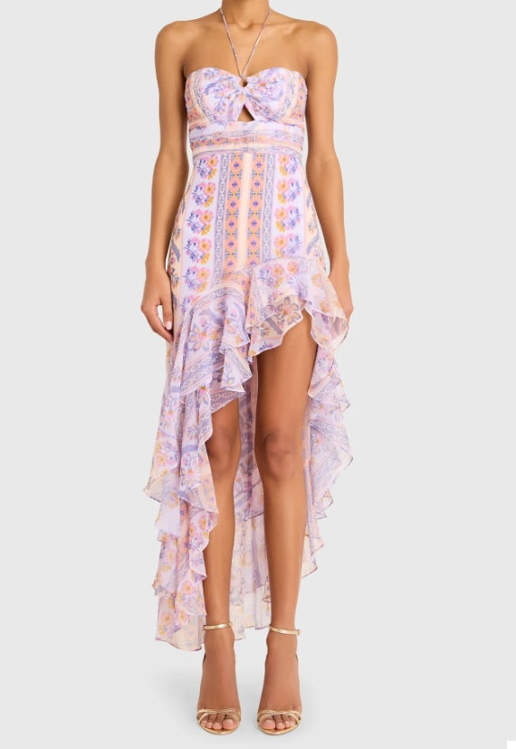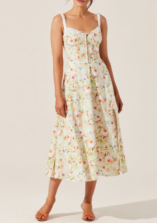 ASTR Julietta Corset Midi Dress - Orange/Green Floral