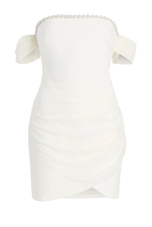 ASTR Sophie Bow Embellished Mini Skirt - White