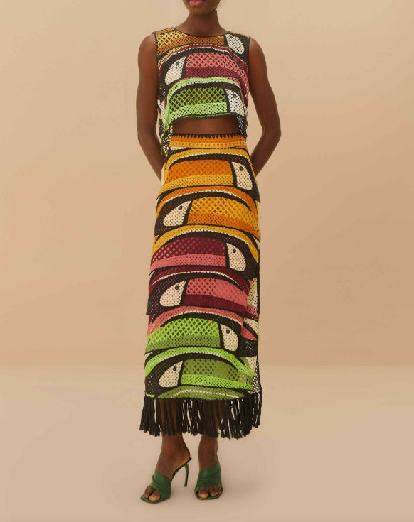 Farm Rio Multicolor Toucan Tree Crochet Top