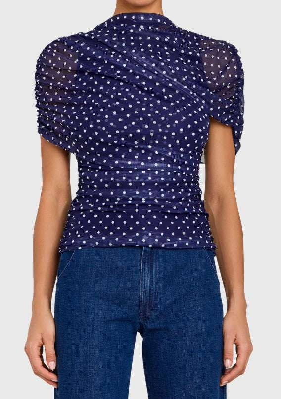 Amanda Uprichard Evianna Top - Navy Polka Dot