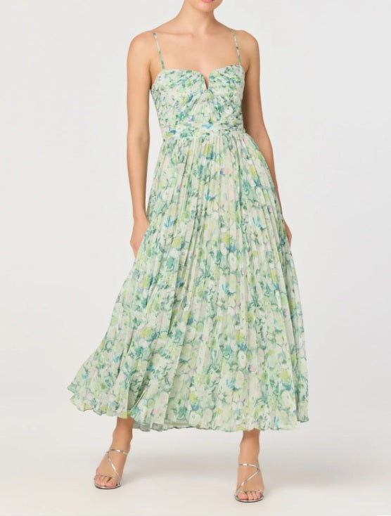 ASTR Bayley Pleated Maxi Dress - Green Floral