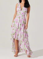 ASTR Cytherea Asymmetric Ruffle Midi Dress - Lavender Floral