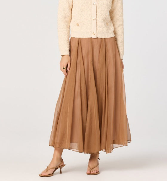 ASTR Fiori Flared Godet Maxi Skirt - Walnut