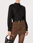 - High-neck satin blouse