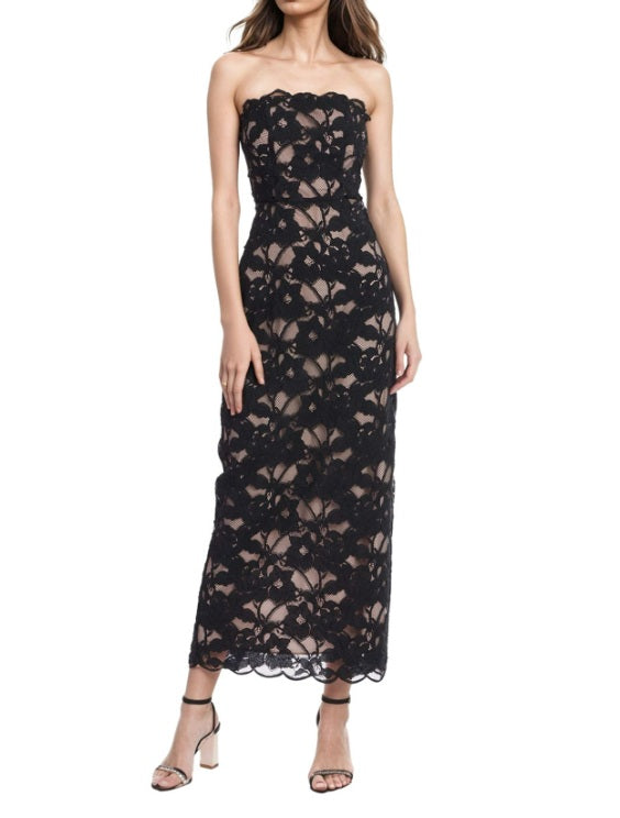 Badgley Mischka Maya Strapless Lace Midi Dress - Black
