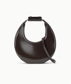 The Mini Moon Bag is an update to our classic crescent moon shape in leather with inner suede lining and a magnetic closure to hold your essentials. This bag comes with a removable crossbody strap.