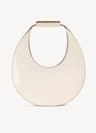 The Moon Bag features a curved handle with a removable STAUD embossed accent. Designed in a crescent moon shape with inner suede lining and a magnetic clasp closure to hold your essentials.
