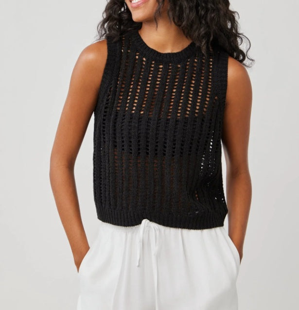 Bella Dahl Sleeveless Open Knit Sweater - Black