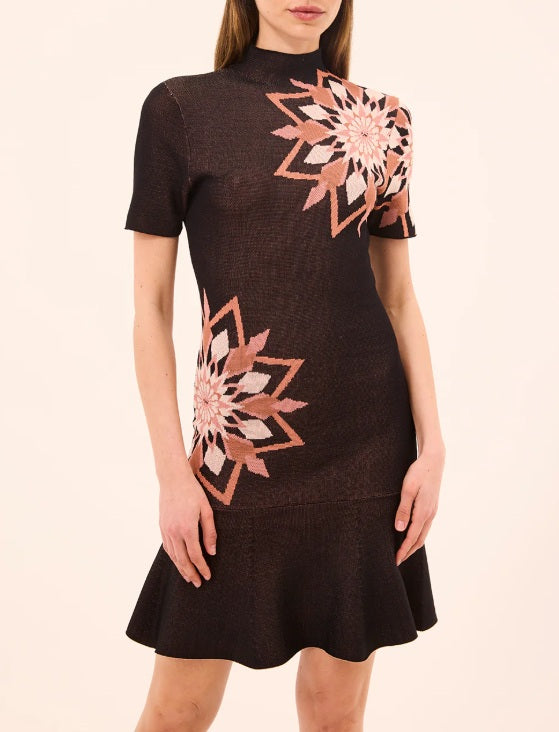 Farm Rio Farm Rio Garden Silhouette Black Long Sleeve Mini Dress