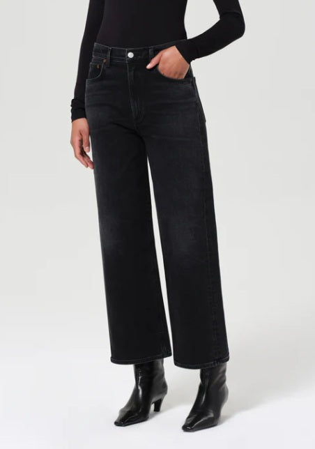 Liverpool Stride Crop Wide Leg Jeans - Black Rinse