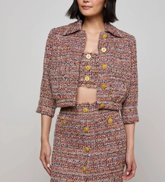 L'Agence Jia Tweed Jacket - Mauve/Tan Multi Tweed