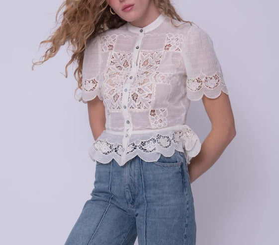 Love The Label Elizabeth Top - Chelsea Embroidery Cream