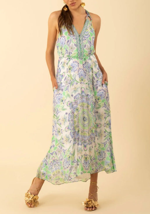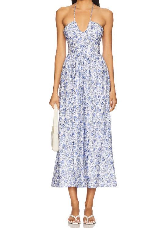 MinkPink Evelyn Halter Midi Dress - Blue Floral