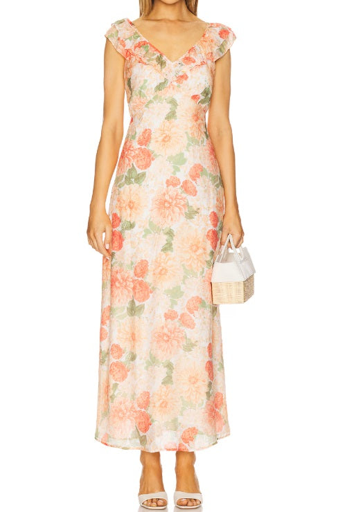 MinkPink Aida Frill Maxi Dress - Apricot Floral