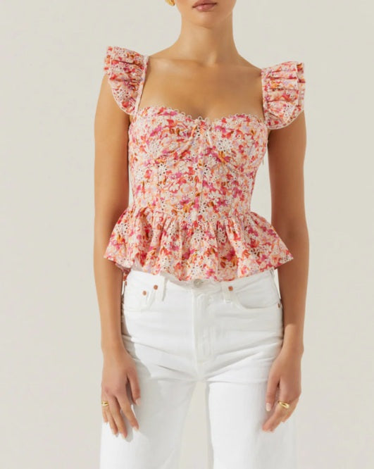 ASTR Baylin Peplum Top - Pink Multi Floral