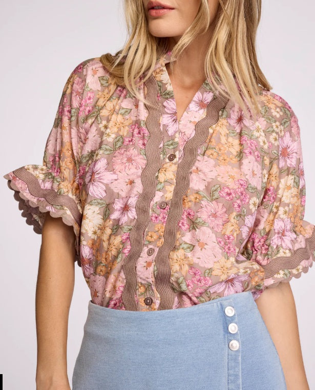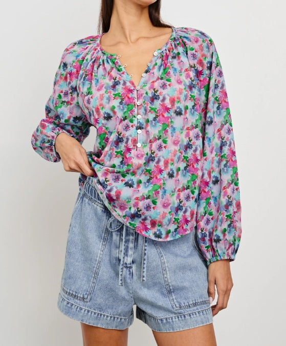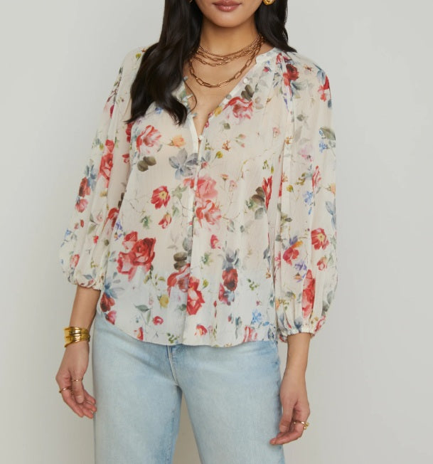 L'Agence Teagan Blouse - Ivory Multi Watercolor Dusty Floral