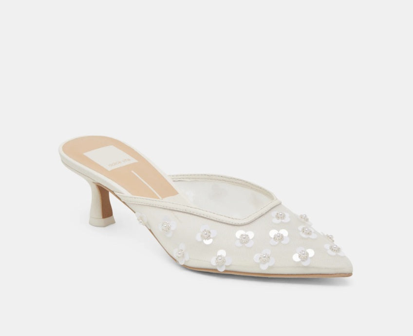 Dolce Vita Clara Pearl Heels - True White Daisy Mesh