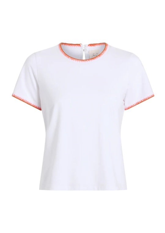 Cinq à Sept Crochet Shrunken Tee - White/Carnation Multi