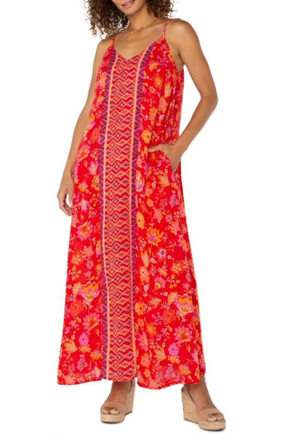 Liverpool Spaghetti Strap Woven Maxi Dress - Red/Orange Floral