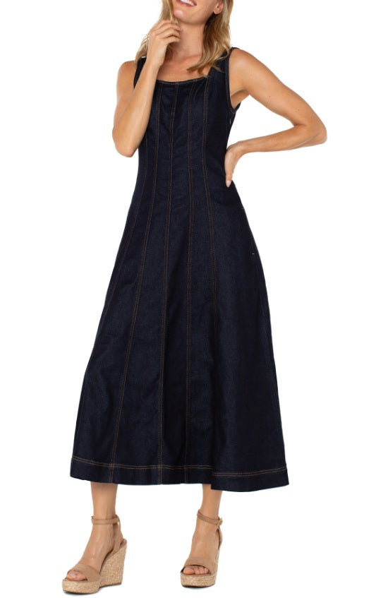 Liverpool Midi Dress With Smocked Back - Indigo Rinse