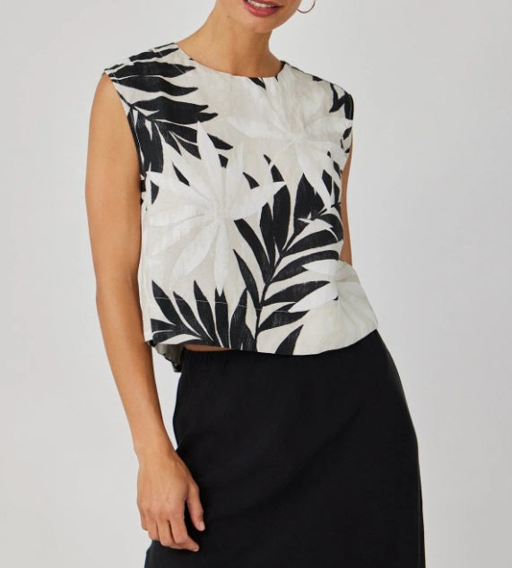Bella Dahl Boxy Button Back Top - Maui Palm Print