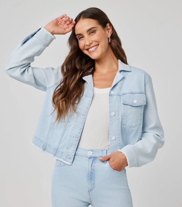 Bella Dahl Coco Frayed Mix Denim Jacket - Tidal Wash Spray