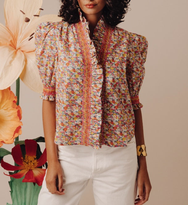 Love The Label Liberty Fabric Short Sleeve Zuri Top - Libby Print