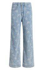 The Petite Bouquet Denim Betsy Pant is a high-quality denim piece that blends a graceful flower pattern with a wide-leg cut, making it perfect for transitioning from summer to fall.