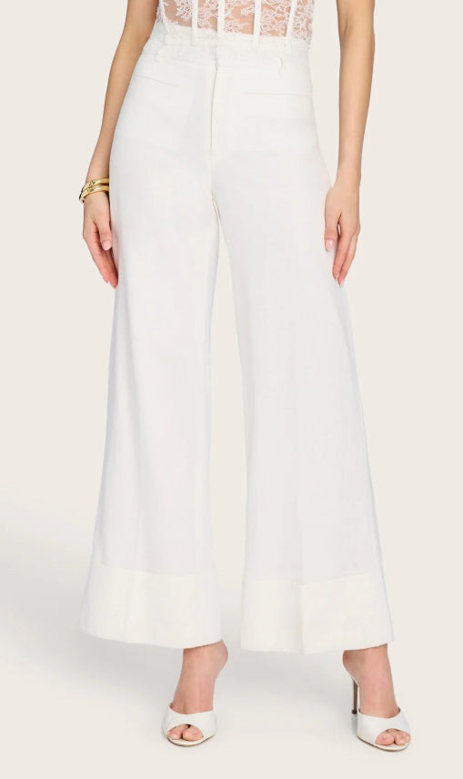 Ultra-chic and effortlessly polished, these high-waisted linen pants feature an ankle-length wide-leg silhouette, accented by cuffs for a contemporary finish. A versatile staple, they pair seamlessly with breezy summer tops and tees for work days or weekends.