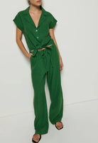 Relaxed refinement at its best. These effortless pants feature a tunneled elastic waist with a functional tie, side slit pockets, and back patch pockets. Make it a set with the Noemie Tie Blouse. This one comes in Green Lawn.