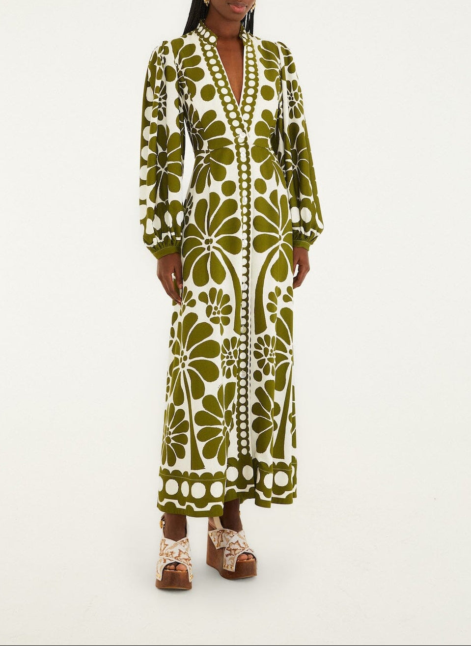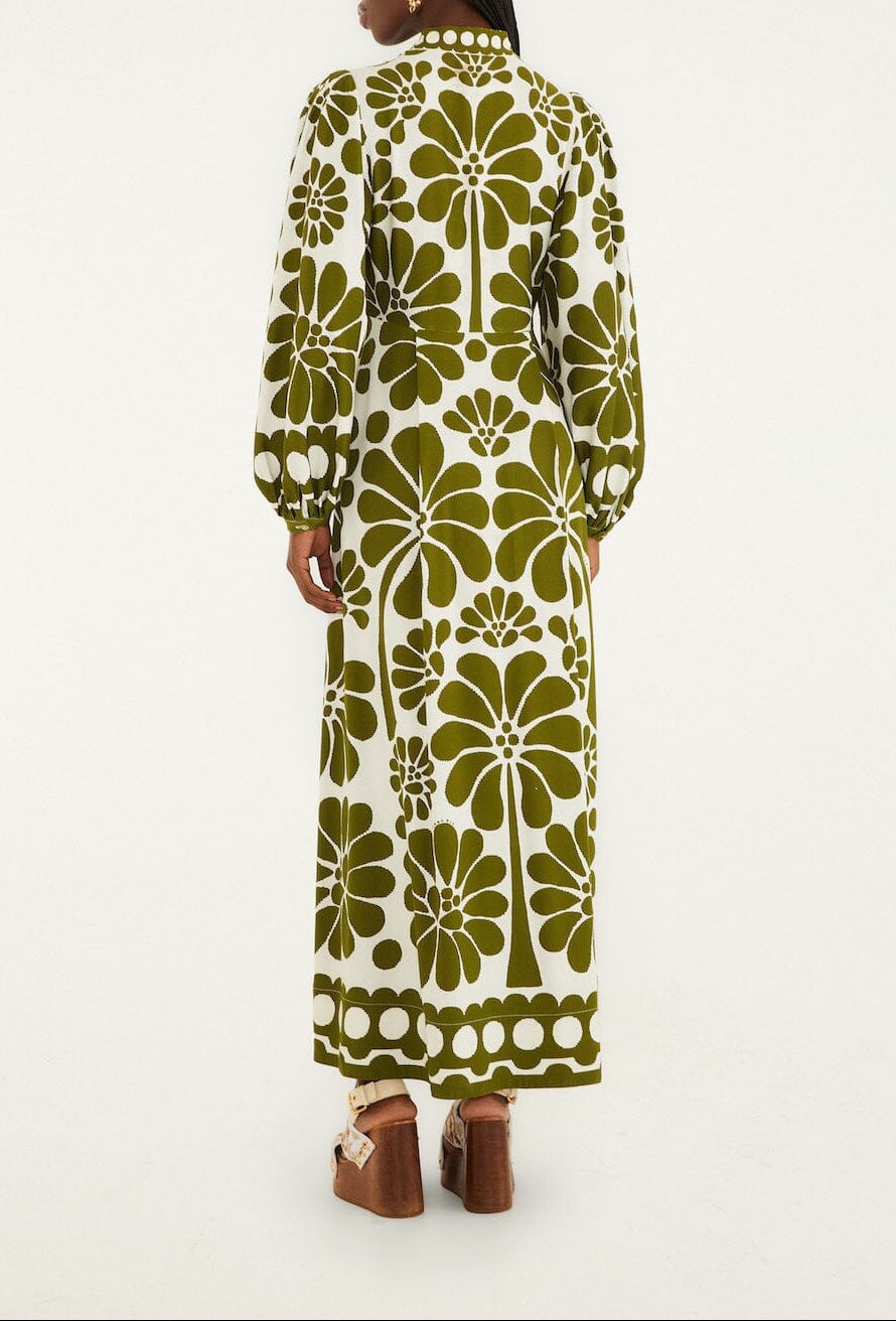 Farm Rio Green Palermo Buttoned Puff Sleeve Maxi Dress
