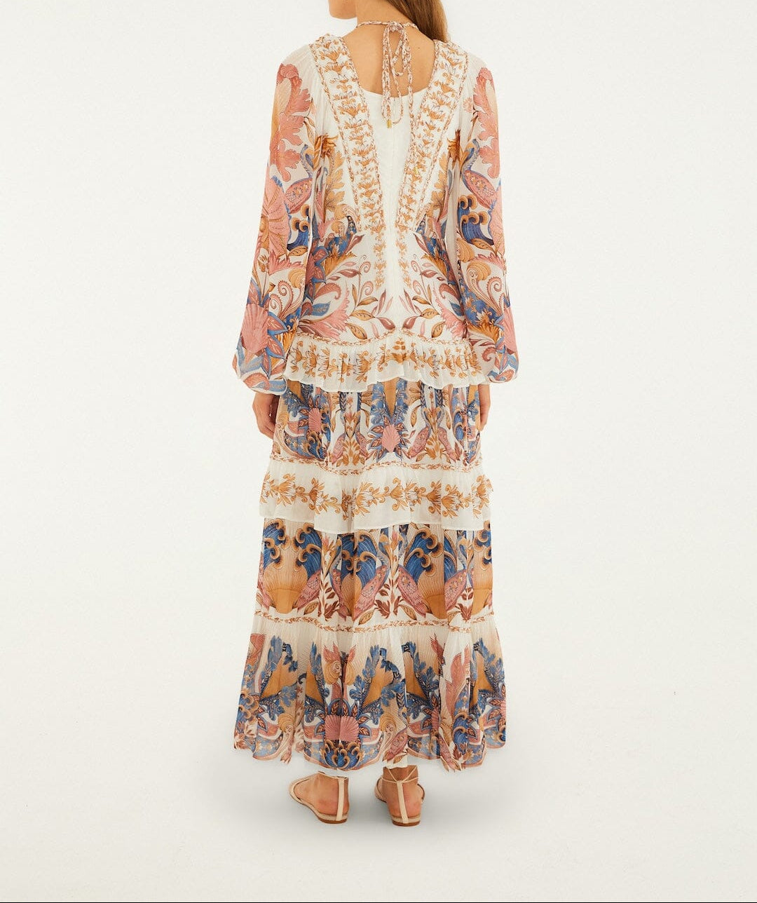 Farm Rio Off-White Sea Garden Ruffled Maxi Dress