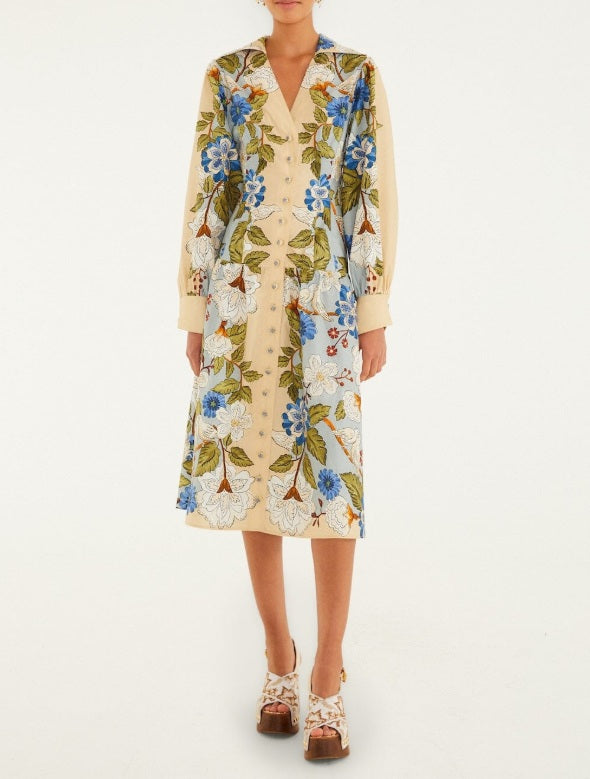 Farm Rio Sand Garden Scarf Long Sleeve Midi Dress