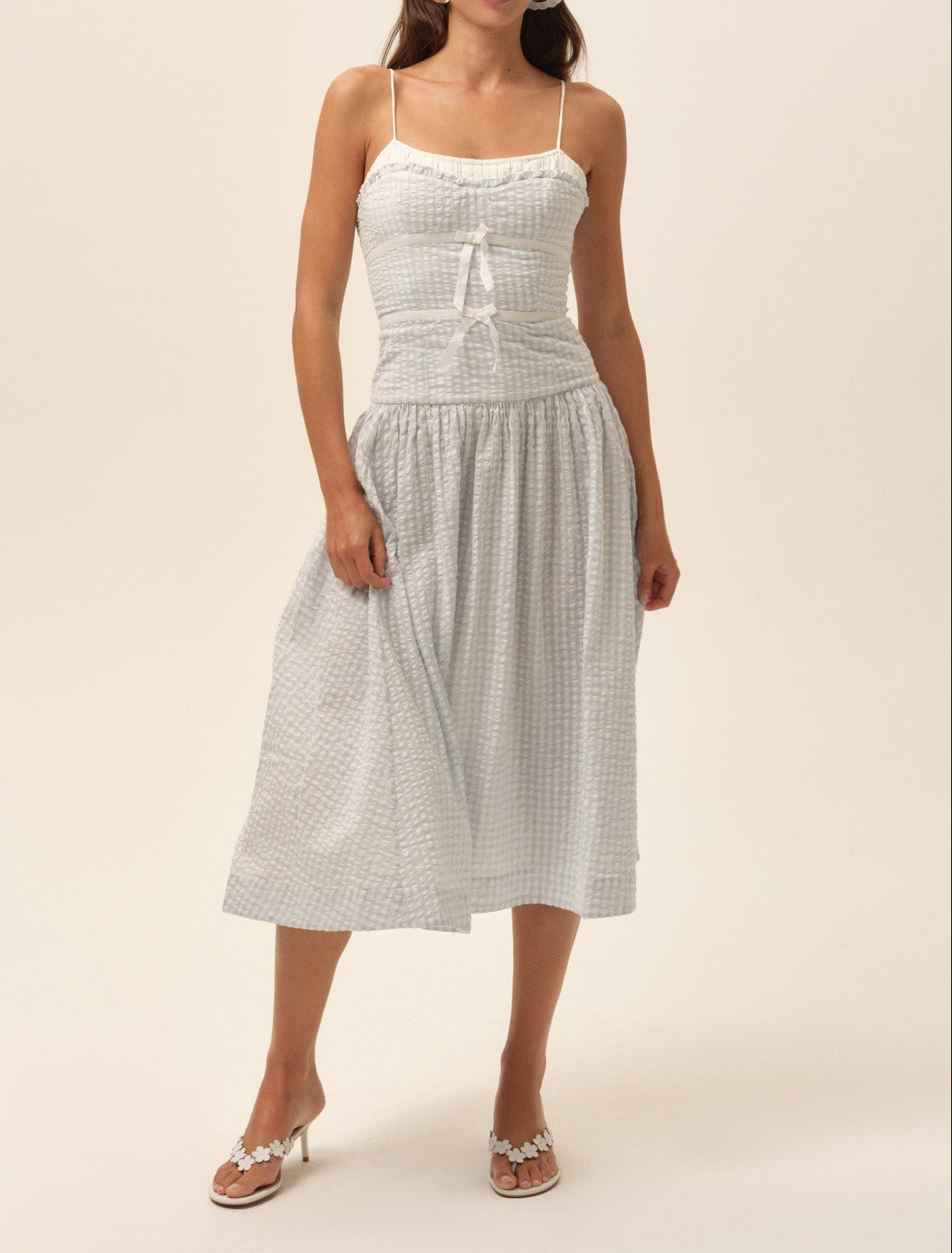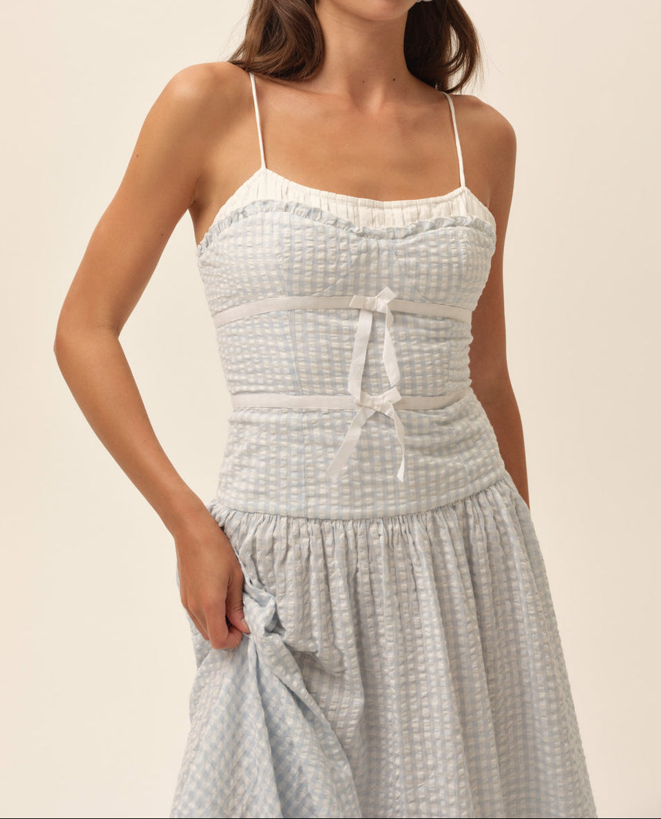 For Love & Lemons Scotch Bonnet Gingham Mini Dress - Baby Blue