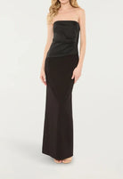 Turn heads in the Evie Gown, a modern take on classic sophistication. This strapless beauty features an asymmetrical bodice with subtle ruching, creating a refined yet alluring silhouette. Whether it’s a gala, cocktail event, or black-tie affair, this gown is your go-to for understated glamour.