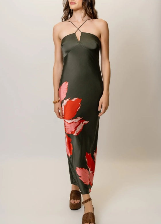Hutch Zennia Dress - Olive Placement Coral Sketched Iris