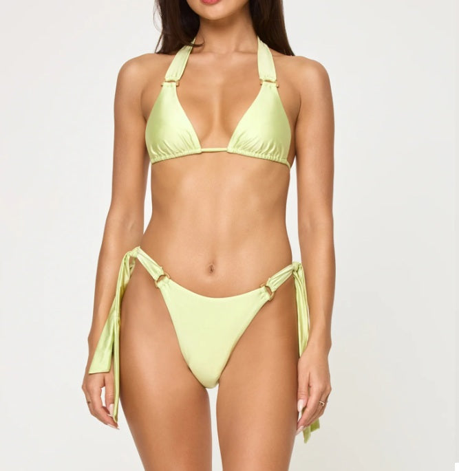 You're going to go crazy for the KiKi! Get ready to soak up all the compliments when you wear them. These tanga bikini bottoms offer minimal coverage so you can show off those buns! Side ties, metal D rings and a mid-rise complete the look. These best selling bottoms are now here in our whimsical mermaid-inspired shine fabric.